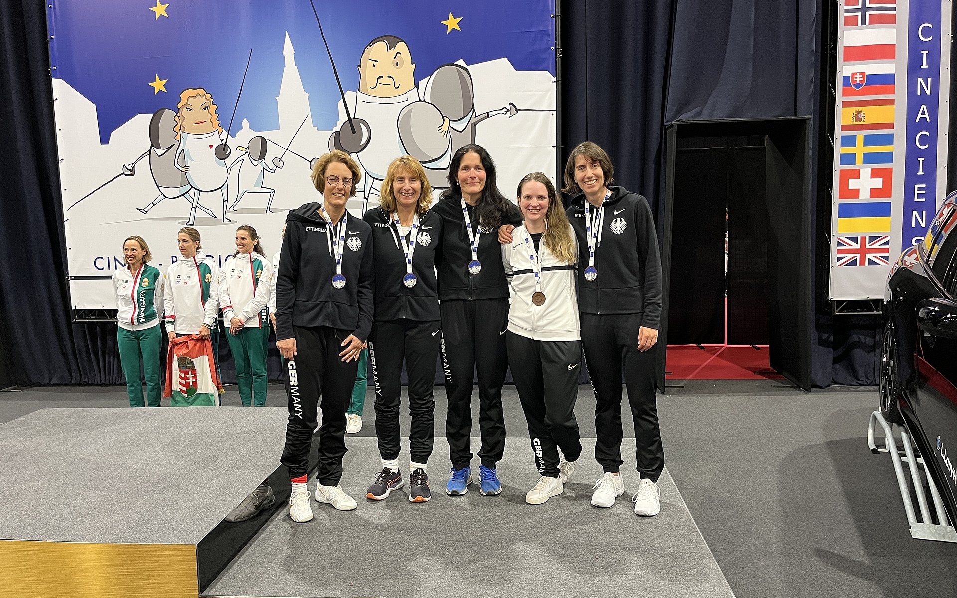 Im Damensäbel war Deutschland (Petra Both, Margit Budde, Margaretha Dresen-Kuchalski, Karin Jansen, Viola Richter) leider anfangs chancenlos und unterlag Großbritannien deutlich. Im kleinen Finale machte man es gegen Frankreich spannend, verlor aber mit 41:45 knapp und wurde vierter.