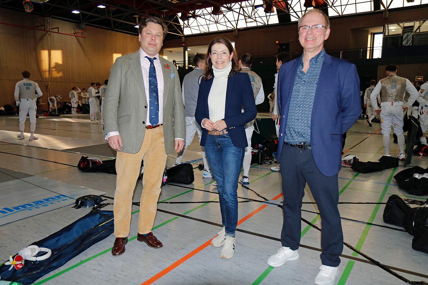Bild 1: Benjamin Denzer (DFB-Präsident), Monika Böttcher (Bürgermeisterin Dörnigheim), Dr. Michael Kaib (Abteilungsleiter Fechten der TG Dönigheim).