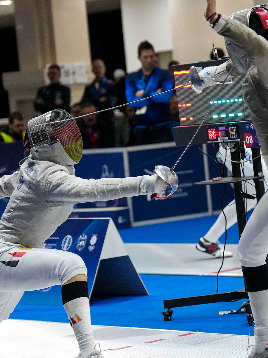 Im Herrendegen schaffte Rudy Hummel (Heidenheimer SB) es bis ins Achtelfinale. An Position 13 gesetzt setzte er sich in der Runde der besten 64 souverän mit 15:9 gegen Denys Lavrentiev aus der Ukraine durch. Auch im anschließenden 32er-KK gewann er sein Gefecht gegen Panagiotis Theodoropoulos aus Griechenland mit 15:12. Im 16er wurde er durch Alon Sarid (ISR) mit 9:15 gestoppt und holte den starken 14ten Platz. Levi Deng (Eintracht Frankfurt) und Ole Petersen (FC Leipzig) konnten jeweils das erste KO für sich entscheiden, scheiterten dann aber im 64er. Sie wurden 52ter und 62ter. Für Max Straub (ATSV Saarbrücken endete der Wettkampf nach der Vorrunde auf Rang 111.