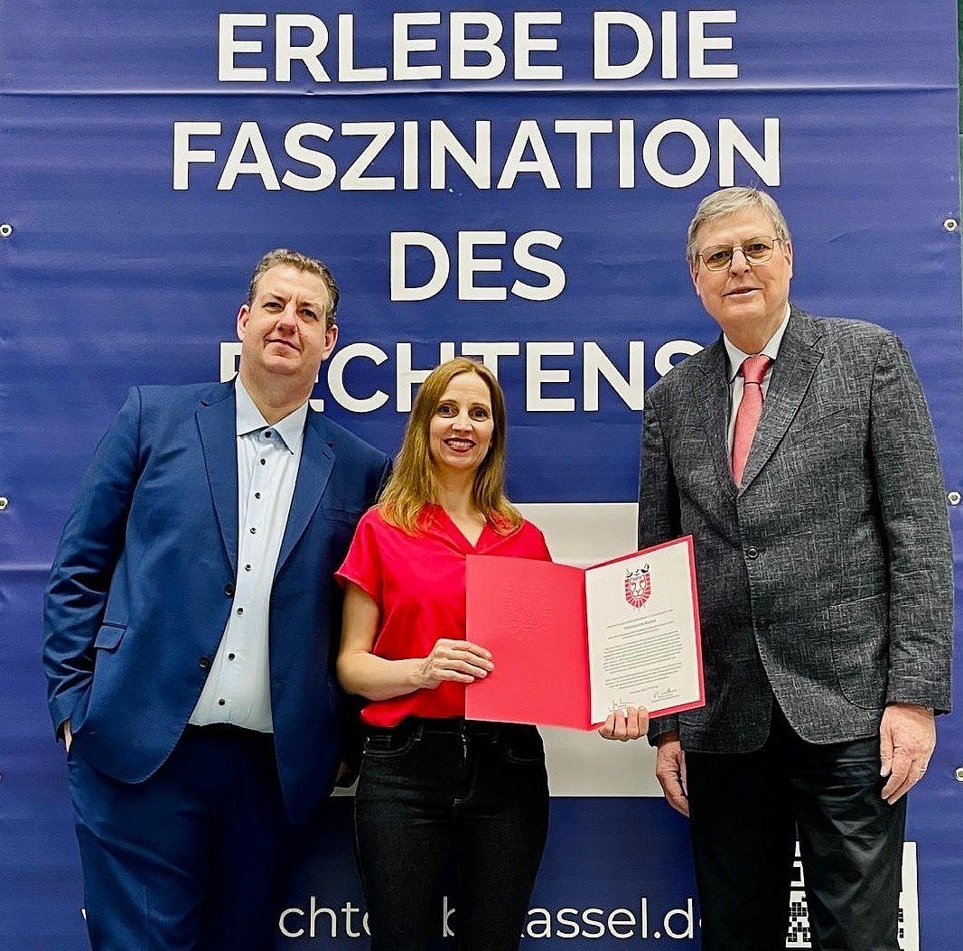 Der Hessische Fechterverband gratuliert dem Fechtclub Kassel zum 30. Jubiläum der Internationalen Hessischen Veteranen-Meisterschaften. Die seit dem 1./2. Oktober 1994 in Kassel stattfindenden Internationalen Hessischen Veteranen-Meisterschaften erfreuen sich von Beginn an größter Beliebtheit. Am 07./8. März 2026 waren 243 Veteran Fechter/innen am Start. Im Jahr 2010 hat der Deutsche Fechter-Bund der Veranstaltung den Status „DFB-Qualifikationsturnier“ verliehen. Seit dem Jahr 2024 richtet der Fechtclub Kassel die Internationalen Hessischen Veteranen Meisterschaften in Memoriam des Gründers als „Franz-Hirt-Gedächtnisturnier“ aus. Anlässlich des Turniers überreichte Harald Lüders als Referent für Veteranenfechten des Hessischen Fechterverbands im Beisein von Frau Wenning-Hirt die Ehrenurkunde des Hessischen Fechterverbands an den Präsidenten Marcel Ansorge und die Vizepräsidentin Sabine Glaser. Er dankte dem Fechtclub Kassel und seinen ehrenamtlichen Mitarbeiterinnen und Mitarbeitern für die wertvolle Förderung des Fechtsports.
