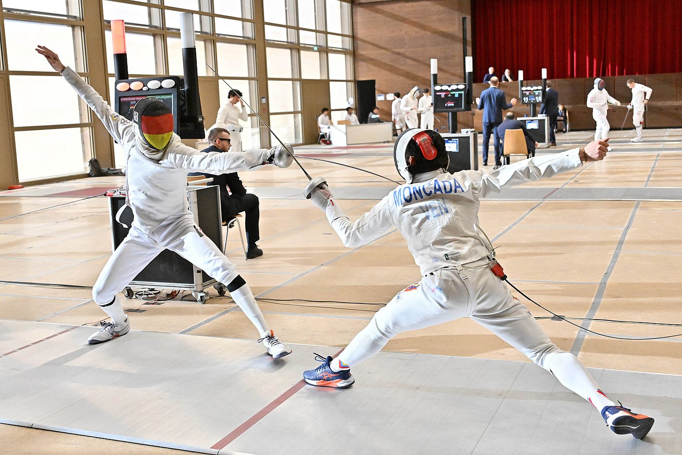 Das Herrendegen-Team mit Marco Brinkmann, Jakob Stange, Matthew Bülau und Ole Petersen schlug “zuhause” die deutlich besser gesetzte Mannschaft aus Venezuela in einem wahren Krimi mit 41:40. Ebenso knapp musste man sich dann aber Kasachstan und auch den USA mit 44:45 geschlagen geben. Am Ende stehen Platz 15 und viele Erfahrungen für das junge Team zu Buche.
