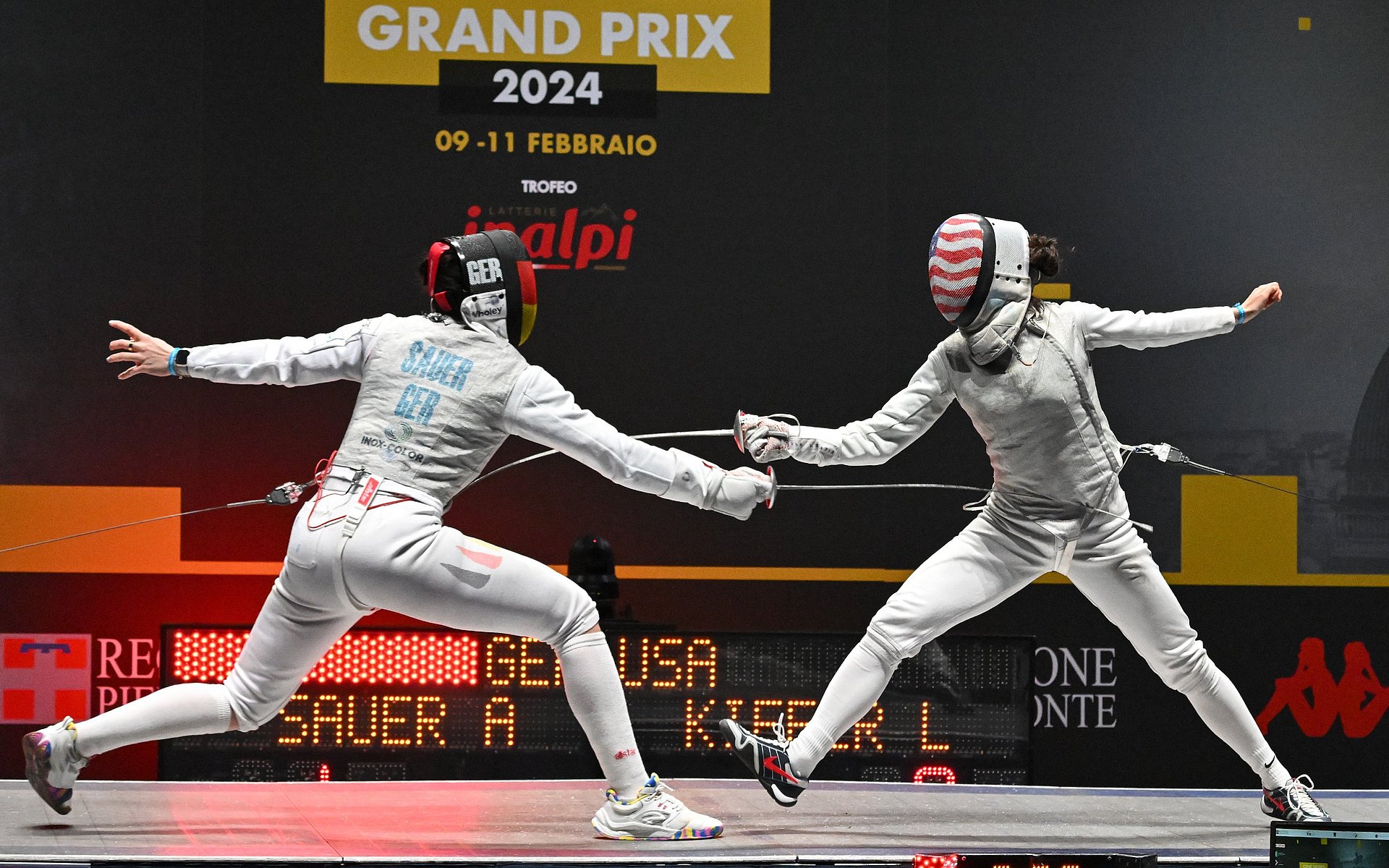 Nach anfänglichen Schwierigkeiten und einem knappen Sieg über Lior Druck (ISR) steigert Sauer sich mit jedem Gefecht. Die drei Italienerinnen Erica Cipressa, Camilla Mancini und Martina Batini kann sie souverän besiegen und zieht ins Halbfinale ein. Hier liefert sie sich einen starken Kampf mit der Olympiasiegerin von Tokio Lee Kiefer (USA). Am Ende muss sie sich geschlagen geben, kann sich aber über den dritten Platz und viele Weltranglistenpunkte freuen. Auch in der Olympiaqualifikation kommt sie mit diesem Ergebnis ein gutes Stück voran.