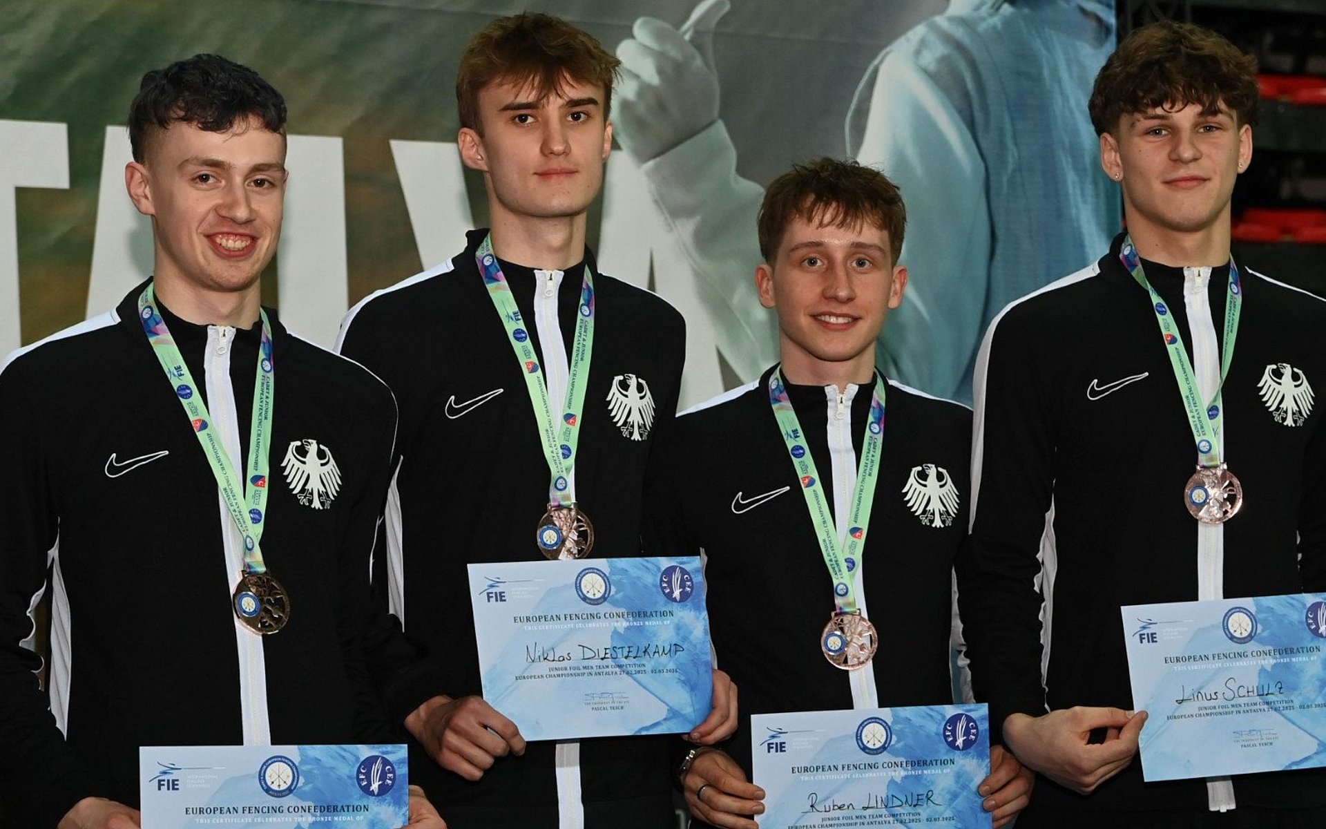 Henrik Barby, Niklas Diestelkamp, Ruben Lindner und Linus Schulz lieferten einen hervorragenden Wettkampf ab. Im Gefecht um Bronze besiegte das DFB-Quartett Ungarn nach anfänglichem Rückstand mit 45:41 und durfte sich bei der Siegerehrung die Bronzemedaillen umhängen lassen.