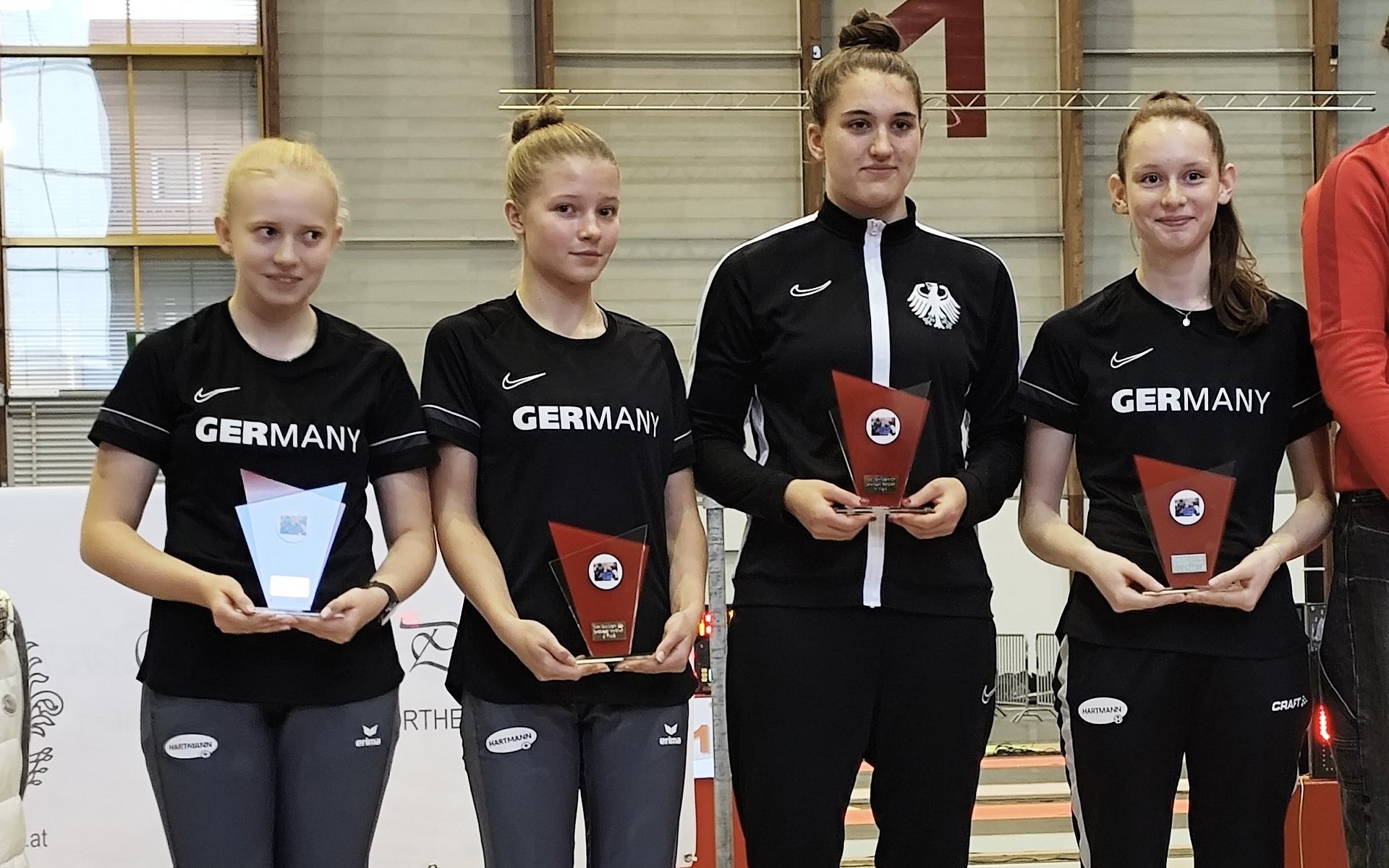 Das Damendegen-Team um Marie Stumpf, Katie Busch, Maria Herz und Anna Sünderhauf präsentierte sich stark. Nach einem souveränen Sieg im 32er gegen das Team aus Rumänien setzten sie sich mit 45:32 gegen die zweite polnische Mannschaft durch. Im Viertelfinale ließen sie auch den Schweizerinnen keine Chance und gewannen mit 45:37. Im Halbfinale wartete dann die erste Vertretung Polens, die unsere Mädels ebenfalls souverän mit 45:38 besiegten. Erst im Finale mussten sie sich einer starken Auswahl aus Tschechien geschlagen geben. Nachwuchs-Bundestrainer Dirk Schiffler sagte zufrieden: „Diese komplett neue Mannschaft konnte nahtlos an die letztjährigen Erfolge bei den Kadetten CCs anschließen und zum 5. mal in Folge im Damendegen eine Medaille bei einem Kadetten CC gewinnen. Das war ein sehr erfreulicher Start in die neue Saison!“