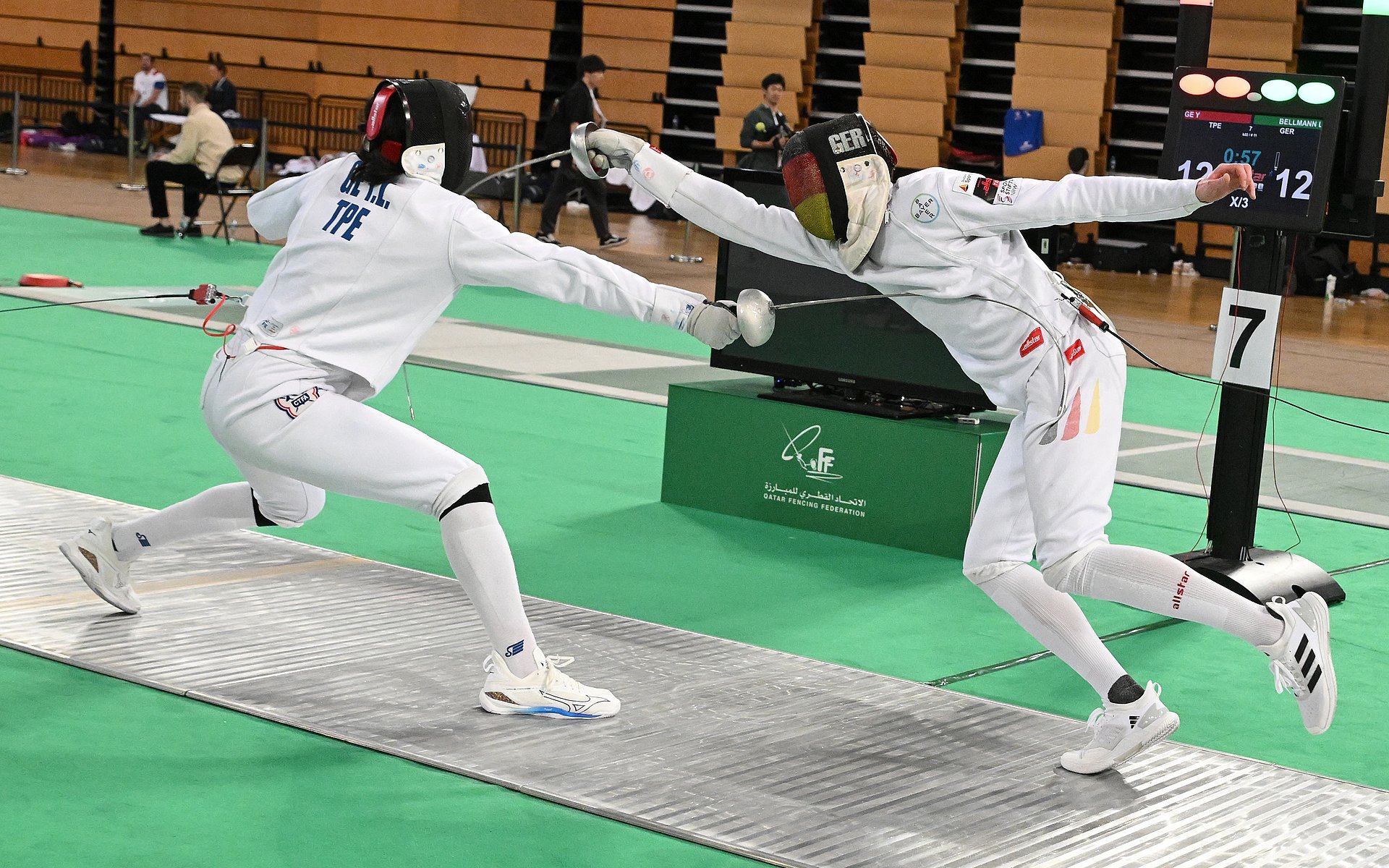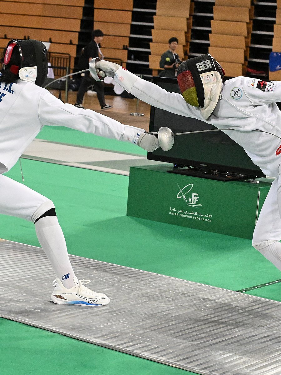 Das Trio aus Marco Brinkmann, Lukas Bellmann und Fabian Herzberg (alle TSV Bayer 04 Leverkusen) kämpft sich mit guten Leistungen durch den ersten Tag und zieht ins Haupttableau ein. Herzberg zeigt dabei eine fehlerfreie Runde und ist vom Vortableau befreit. Bellmann dominiert seine Gegner Mahmoud Mohsen (EGY) und Akseli Heinamaa (FIN), Brinkmann zeigt Nervenstärke und triumphiert mit 15:14 und 15:13.