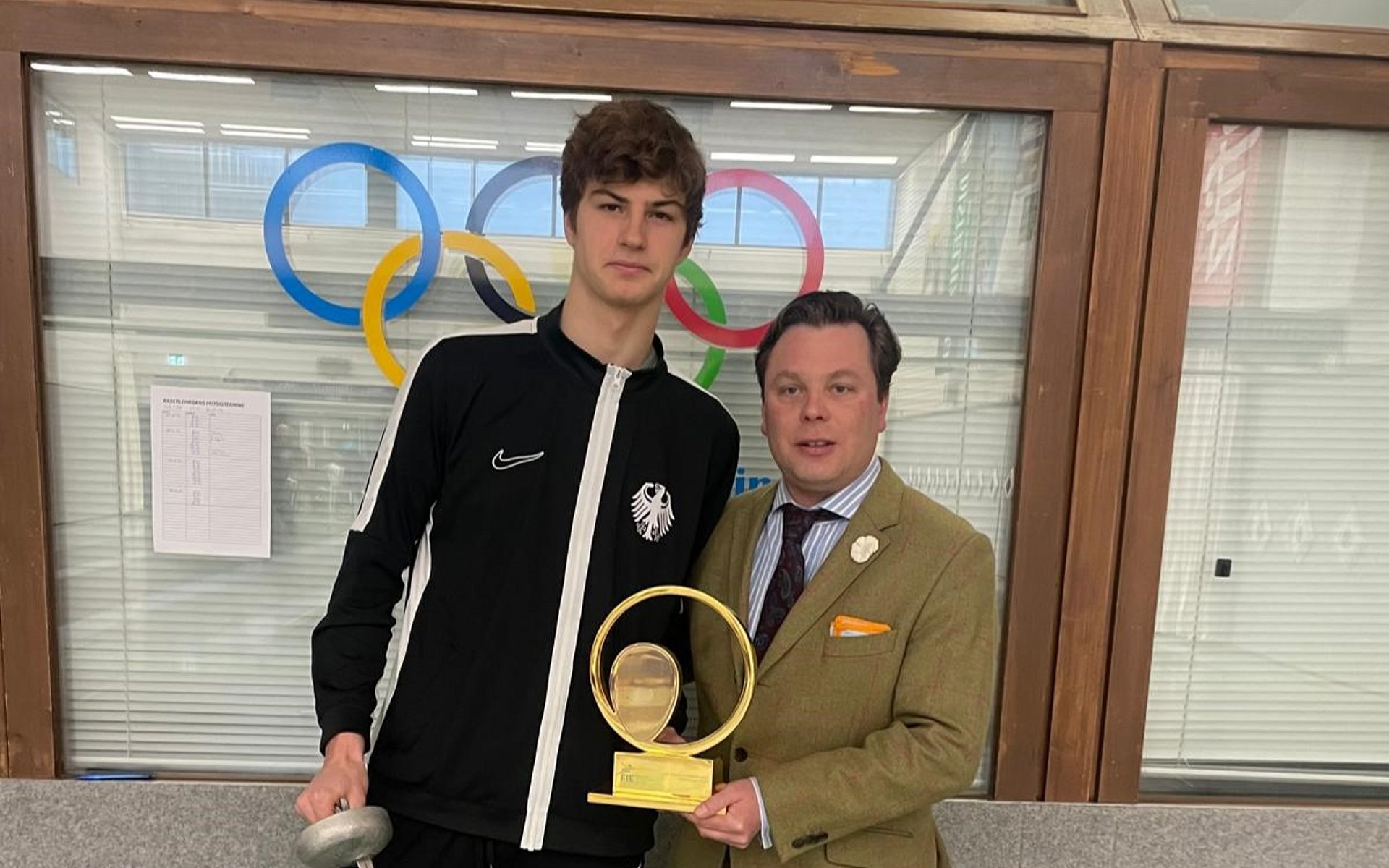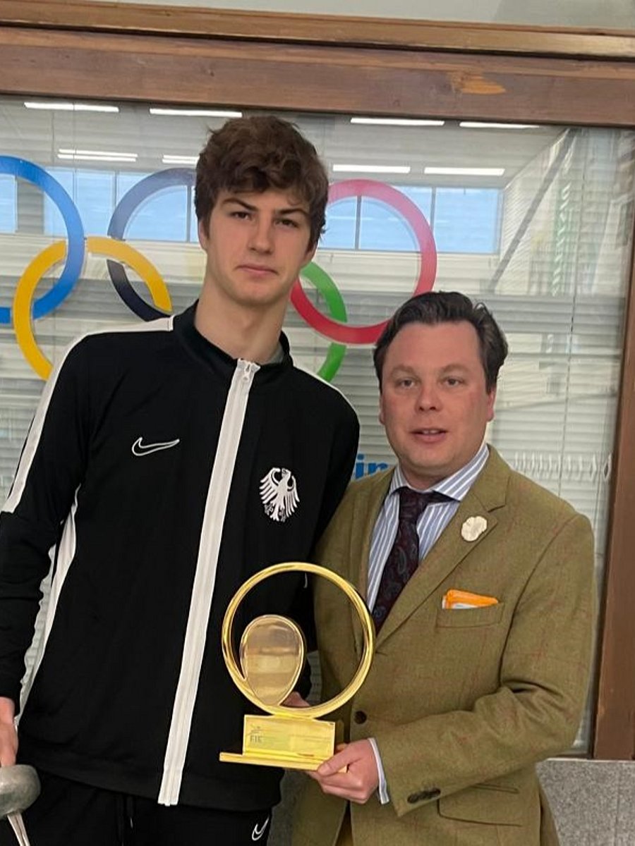 Kurz vor Jahresende, am Rande des NK1-Lehrgangs im Herrendegen überreichte DFB-Präsident Benjamin Denzer den Fairplay-Preis der FIE an Ole Petersen. Der 17-jährige vom FC Leipzig war durch den Weltverband ausgezeichnet worden, weil er bei der WM in Riyadh auf einen nicht zählbaren Bodentreffer seinerseits aufmerksam gemacht hatte. Beim FIE-Kongress in Tashkent im November hatte er jedoch wegen eines Wettkampfs nicht anwesend sein können. Nun konnte der Preis zusammen mit lobenden Worten an Ole übergeben werden. Denzer gratulierte ihm erneut zu seinem vorbildlichen Verhalten und der damit verbundenen Ehre auch für den DFB.