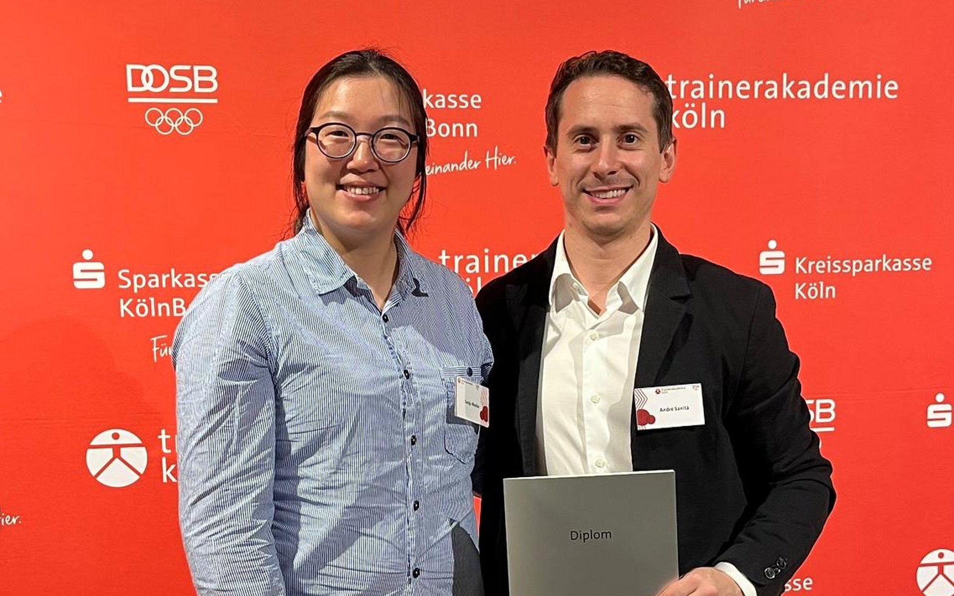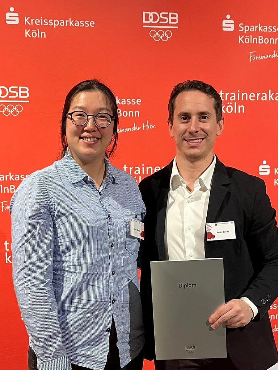 Das Diplom-Trainer-Studium (DTS) an der Trainerakademie Köln des DOSB stellt die höchste staatliche Ausbildung für Trainerinnen und Trainer in Deutschland dar. Nach drei intensiven Studienjahren fand für den Nachwuchs-Bundestrainer Herrenflorett, André Sanità, am 28. Oktober die feierliche Zeugnisübergabe statt. Mit bei der Übergabe war Sunju Macko als Bundestrainerin Wissenschaft im DFB (siehe Bild). Im 2024 gestarteten neuen Jahrgang profitieren mit Tom Möller und Gergö Bujdosó weitere DFB-Trainer von der Ausbildungsqualität. Christian Büttner hat das Studium zudem bereits 2023 begonnen.
