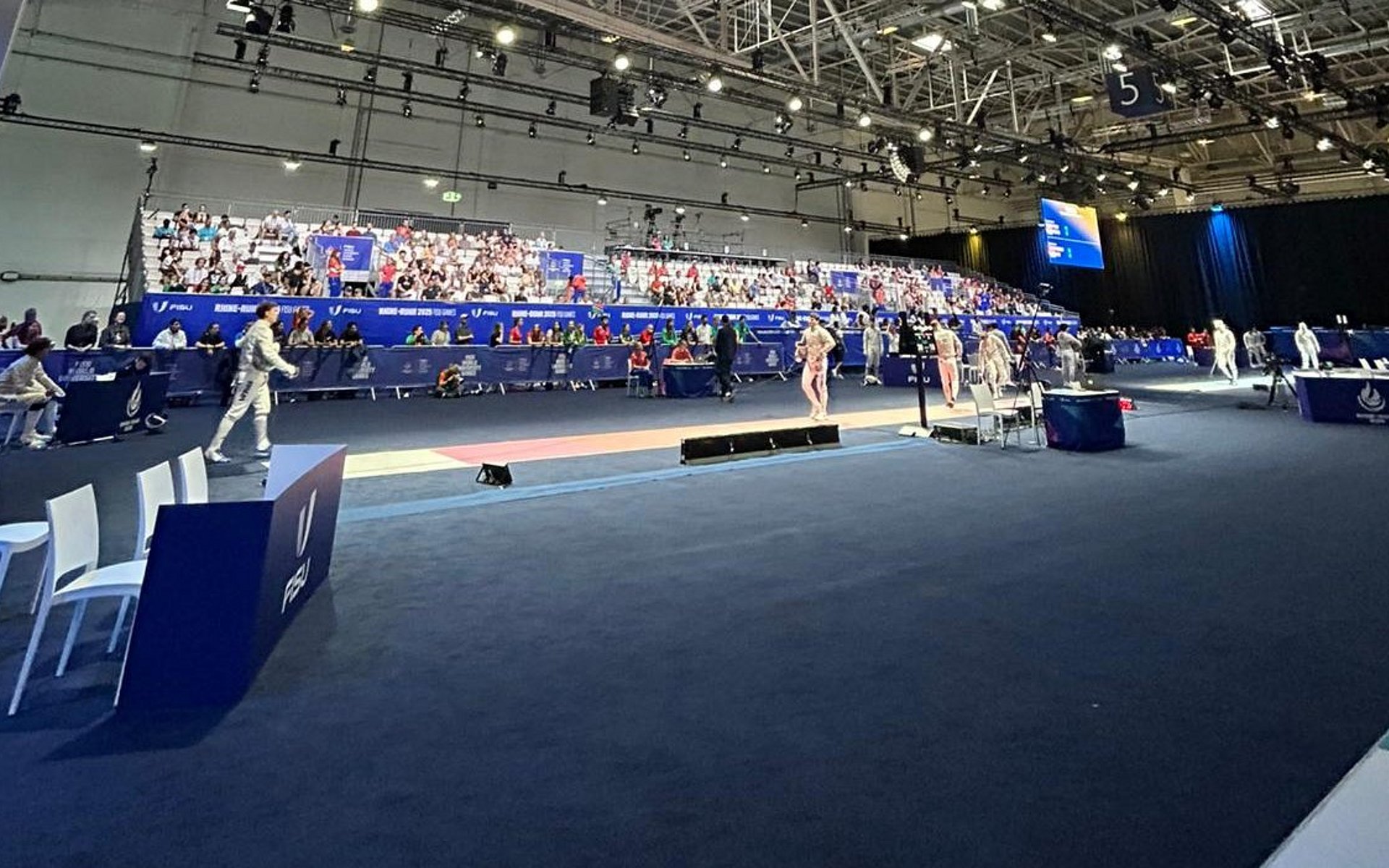 Marie Höfler (TSG Weinheim), Anna Sophie Kothieringer (KTF Luitpold München), Celia Hohenadel (TSG Weinheim) und Lara Witt (PSV Stuttgart) bildeten das DFB-Team für den Mannschaftswettbewerb der Florett-Damen bei den World University Games. Im T16 setzte sich die deutsche Mannschaft mit einer starken Leistung souverän gegen Spanien durch (45:19).