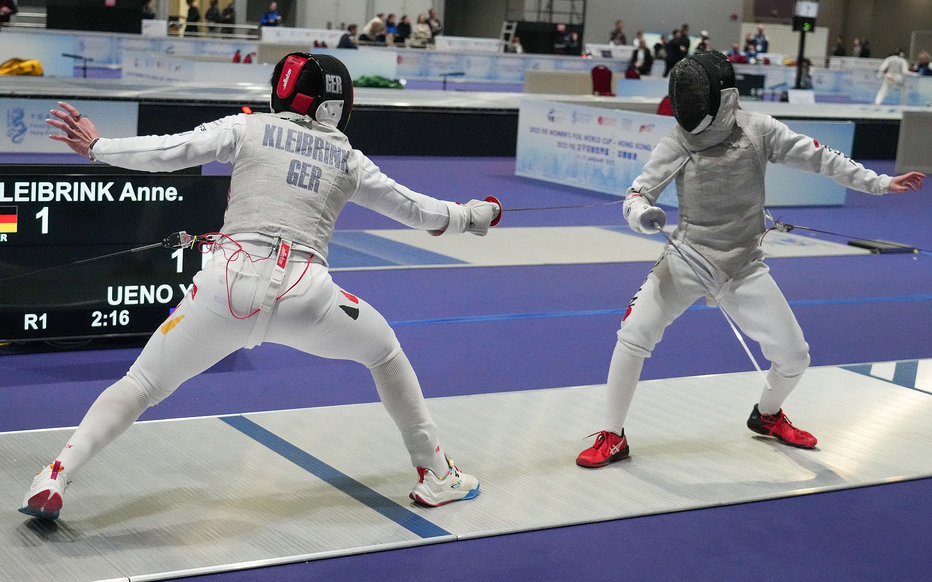 Kleibrink startete mit einem 15:9-Sieg in der 64er-Runde gegen Wang (China) souverän in ihren ersten Weltcup der Saison. Im darauffolgenden Duell der besten 32 schlug die DFB-Fechterin Alina Poloziuk aus der Ukraine mit 15:13. In den Top-16 traf Kleibrink, die für den Weltcup auf Rang acht gesetzt worden war, auf die Japanerin Yuka Uneo (auf Platz 9 gesetzt). Das Duell der beiden Fechterinnen blieb lange Zeit erwartet eng, letztendlich musste sich Kleibrink Uneo, die am Ende des Weltcups den dritten Platz belegte, jedoch mit 12:15 geschlagen geben. Am Ende des zweiten Tages steht für die DFB-Athletin ein guter 11. Platz.