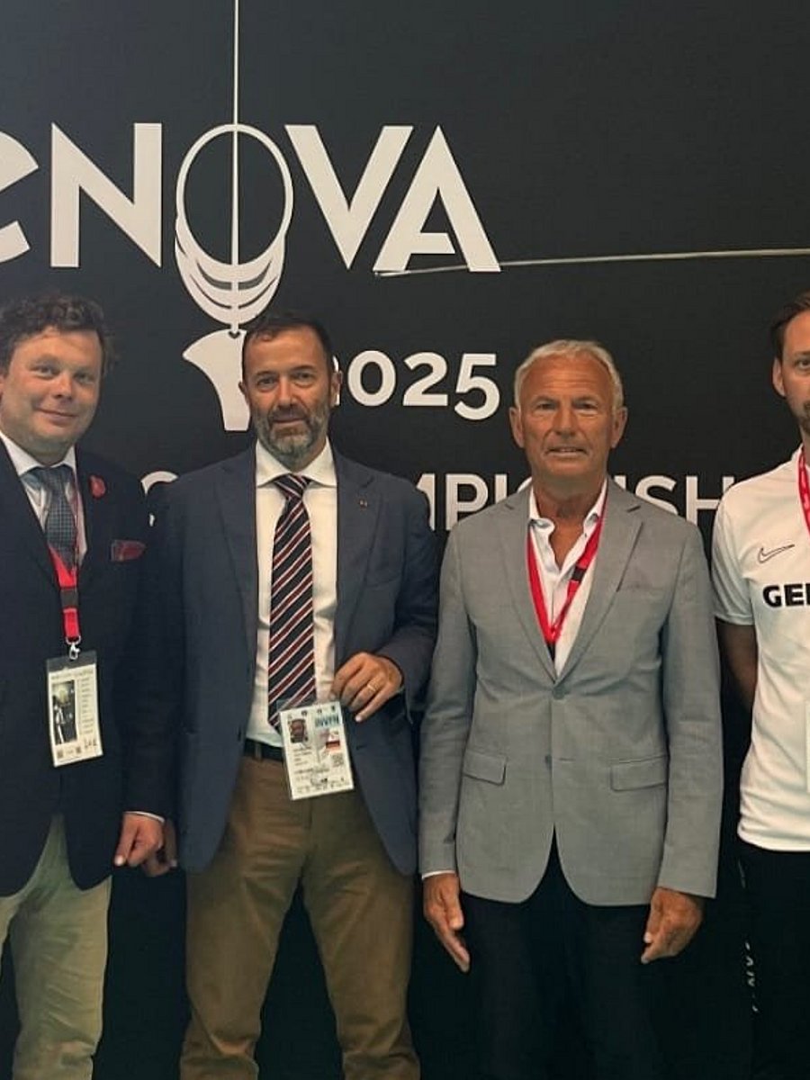 Nach seiner Ankunft hieß der Honorar-Konsul Deutschlands die Mannschaft an der Wettkampfstätte in Genua herzlich willkommen und freute sich über die starke deutsche Präsenz bei diesen Kontinentalmeisterschaften.