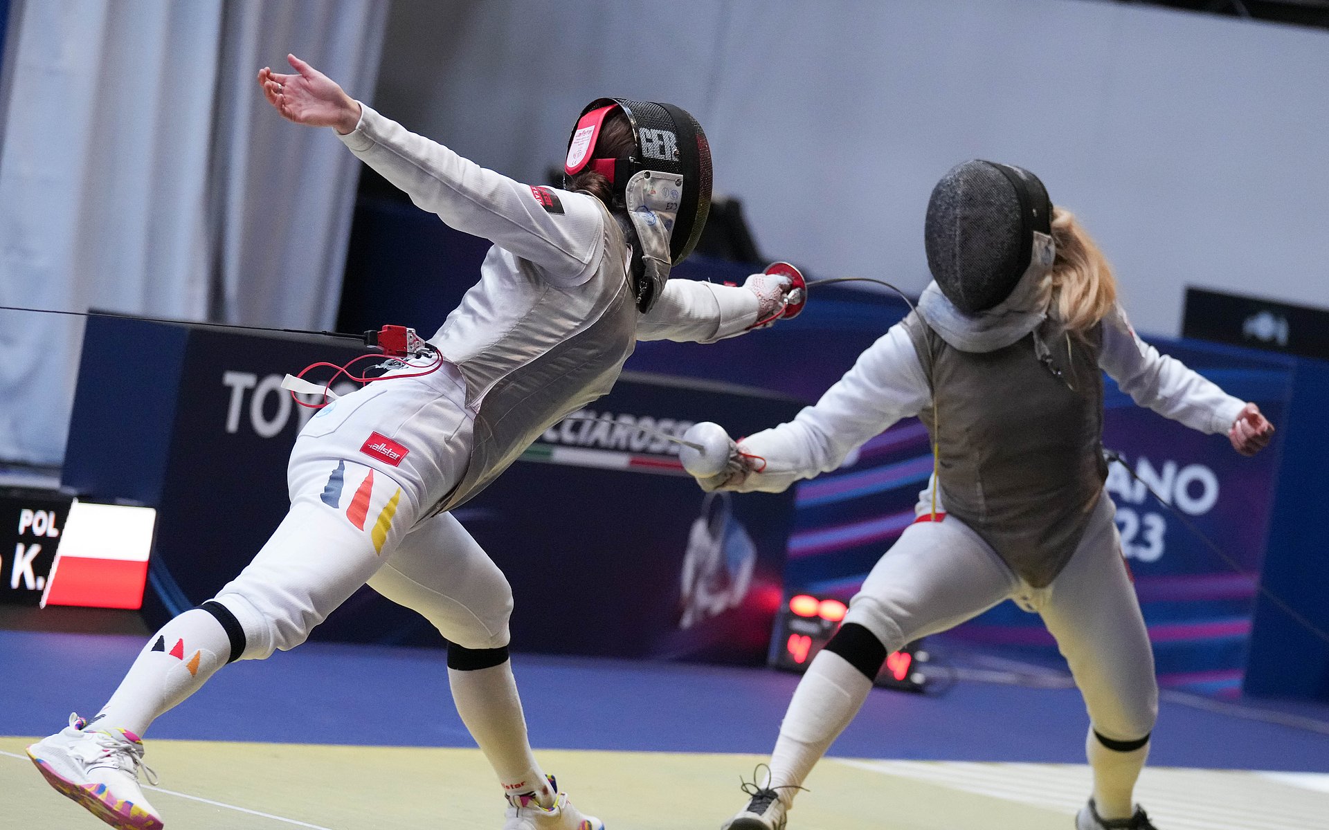 In der Vorrunde ihrer ersten WM kann Aliya Dhuique-Hein (FC Tauberbischofsheim) zwei Gefechte für sich entscheiden, was für ein Freilos im 128er-Vortableau reicht. Das nächste Gefecht gegen Karolina Zurawska (POL) wird kurz spannend, Dhuique-Hein kann sich aber mit 15:12 durchsetzen. Leandra Behr (FC Tauberbischofsheim) ficht eine starke Vorrunde mit nur einer Niederlage und hat ebenfalls ein Freilos im ersten KO. Im 64er-Vortableau lässt sie nichts anbrennen und besiegt Maria Ludmilla Terni (ARG) mit 15:3.
