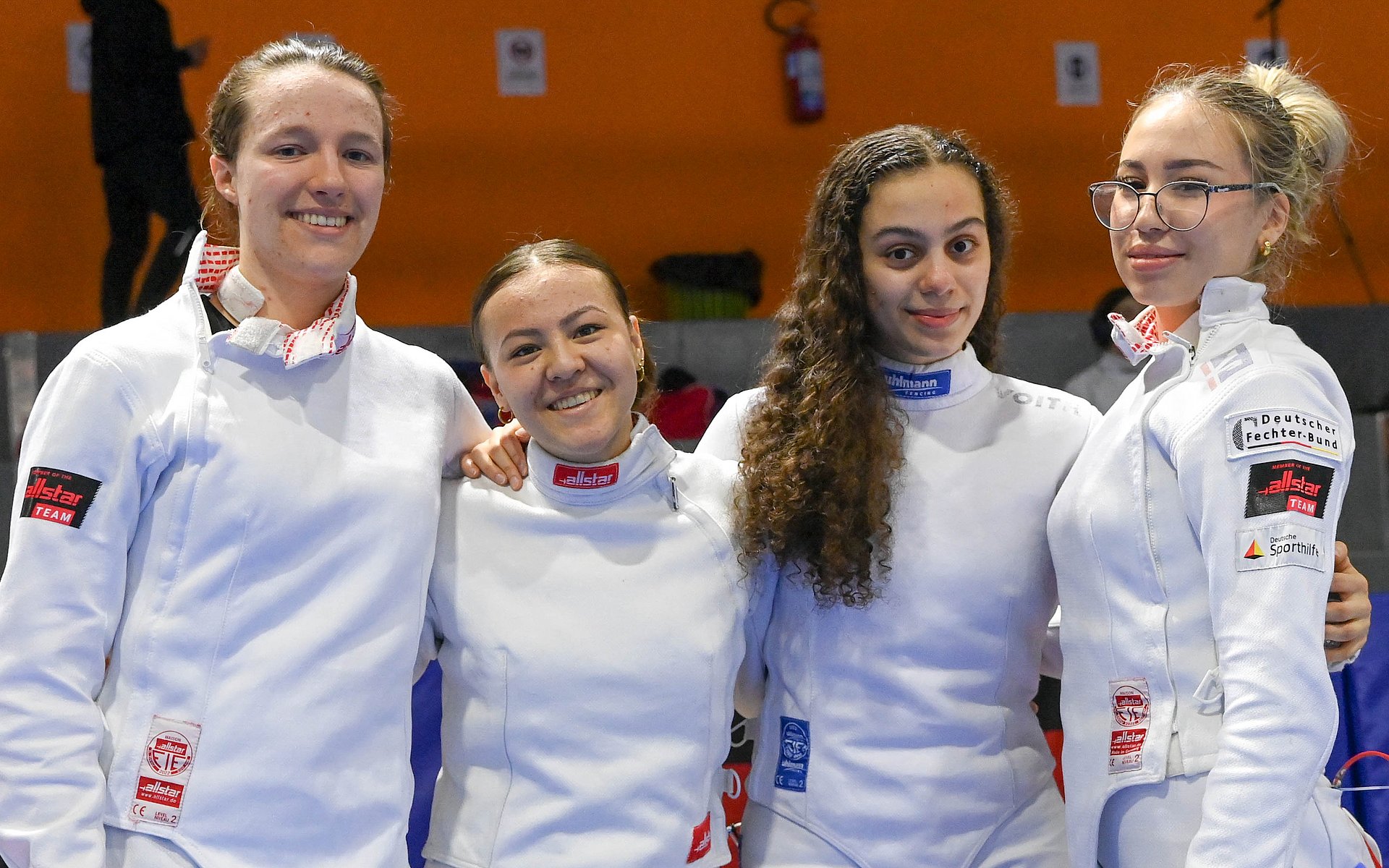 Die deutschen Damen (Fiona Müller, Lina Zerrweck, Daria Yoosefi, Alexandra Zittel) präsentiert sich stark und besiegt Estland souverän. Im Viertelfinale liefert man sich eine wahre Nervenschlacht mit den Favoritinnen aus Polen und triumphiert schließlich mit 30:29. Den starken Französinnen muss man sich dann aber geschlagen geben. Das Gefecht um Platz drei geht nach hartem Kampf leider mit 42:44 zugunsten von Ungarn aus und Deutschland muss sich mit Platz vier zufriedengeben.