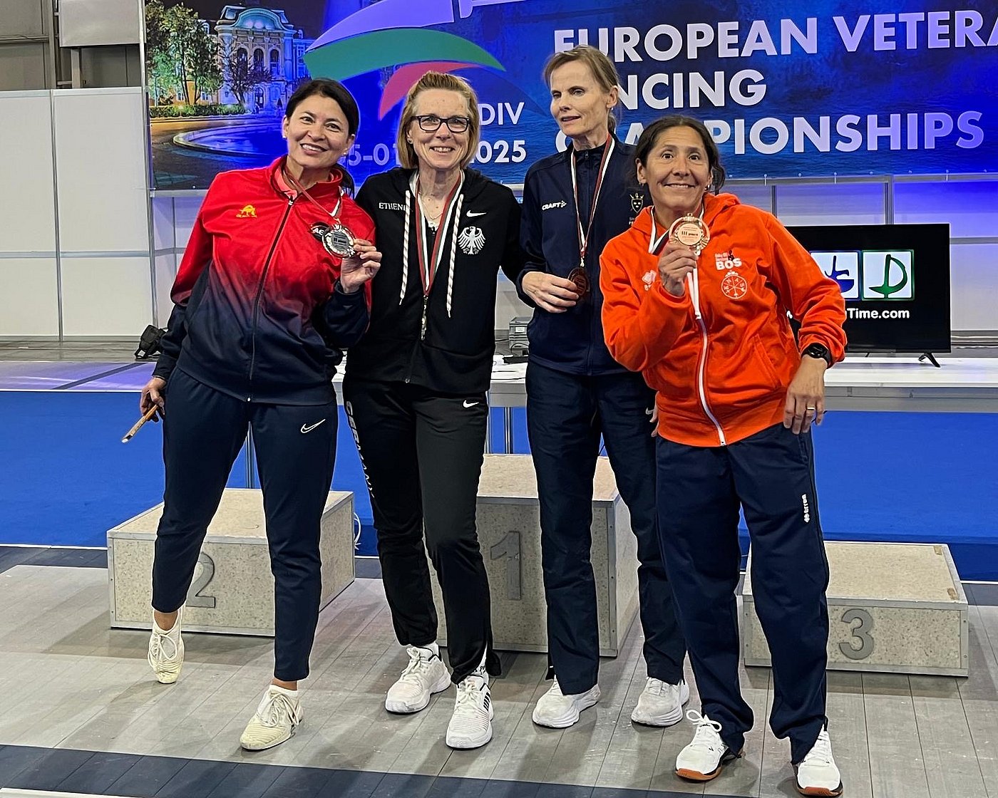 Insgesamt gewann das deutsche Team fünf Gold- drei Silber- und 8 Bronzemedaillen und damit den zweiten Platz in der Nationenwertung. Für Veteranensprecher Harald Lüders ist das ein “großartiges Resultat!” Neben diesen besonderen Erfolgen ist auch der Kampf- und Teamgeist der Teilnehmenden hervorzuheben. Viele Mitglieder der DFB-Delegation hätten vor und nach ihren Wettkämpfen die Fechterinnen und Fechter an der Bahn unterstützt und sich füreinander eingesetzt. “Daas macht uns Veteraninnen und Veteranen sehr glücklich!”, so Lüders.