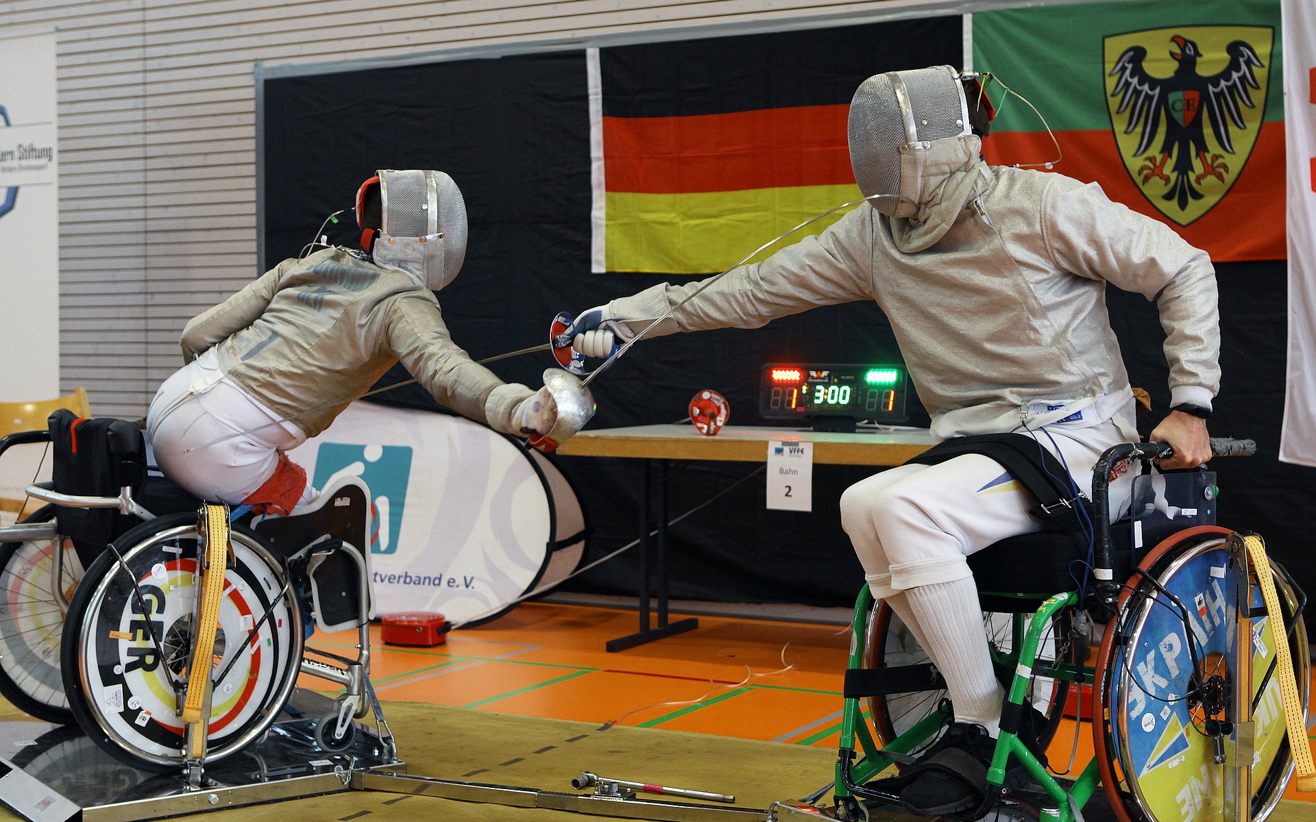 „Die Athlet:innen kommen aus dem gesamten Bundesgebiet, von Rostock bis München und von Köln bis Berlin, darunter sind auch die Fechter:innen der deutschen und der ukrainischen Nationalmannschaften. Das sorgt für ein extrem hohes Niveau bei der DM“ stellen Victor Mingolla (Fachbereichsleiter Fechten) und Lars Pickardt (Referent Sport) vom Deutschen Rollstuhlsport-Verband nicht ohne Stolz fest. Gavrila Spiridon (Bundestrainer Degen und Nachwuchs): „Für unsere jungen Athleten ist es toll, gegen so hochkarätige Gegner fechten zu können, aber es gehört auch eine Menge Selbstbewusstsein dazu, sich nicht durch die Präsenz von so vielen Medaillengewinnern bei den Paralympics, WM und EM einschüchtern zu lassen.“ Jüngster Teilnehmer war der erst 13 Jährige Axel Prats Cruz (FC Gröbenzell), der sich in der U17 Silber sicherte.