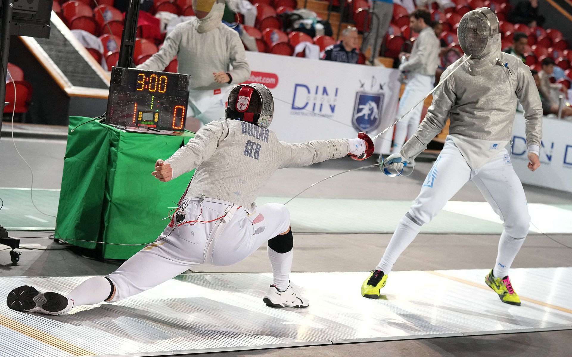 Für Luis Bonah (TSV Bayer Dormagen) beginnt der Wettkampf mit einer guten Vorrunde und einem sicheren Sieg im ersten KO. Im 64er-Vortableau muss er sich jedoch mit 14:15 denkbar knapp Gergo Horvath (HUN) geschlagen geben und wird 78ter. Bereits eine Runde vorher scheidet Frederic Kindler (TSG Eislingen) gegen Tamon Yoshida (JPN) aus und belegt Rang 106.