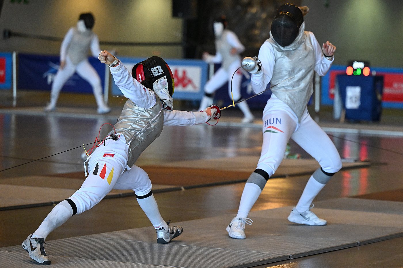 In Turin zeigte Carlotta Sophie Morandi (FC Tauberbischofsheim) eine fehlerfreie Vorrunde und zog damit als Siebtplatzierte direkt ins Hauptfeld ein. Am Samstag trifft sie auf Nok Sze Daphne Chan (HKG). Anne Kleibrink (DFC Düsseldorf) stößt als Weltranglisten-14. und damit vom ersten Tag befreite dazu und steht Hiu Wai Valerie Cheng (HKG) gegenüber. Beide fechten um 09:20 auf Bahn Grün (Kleibrink) und 8 (Morandi).