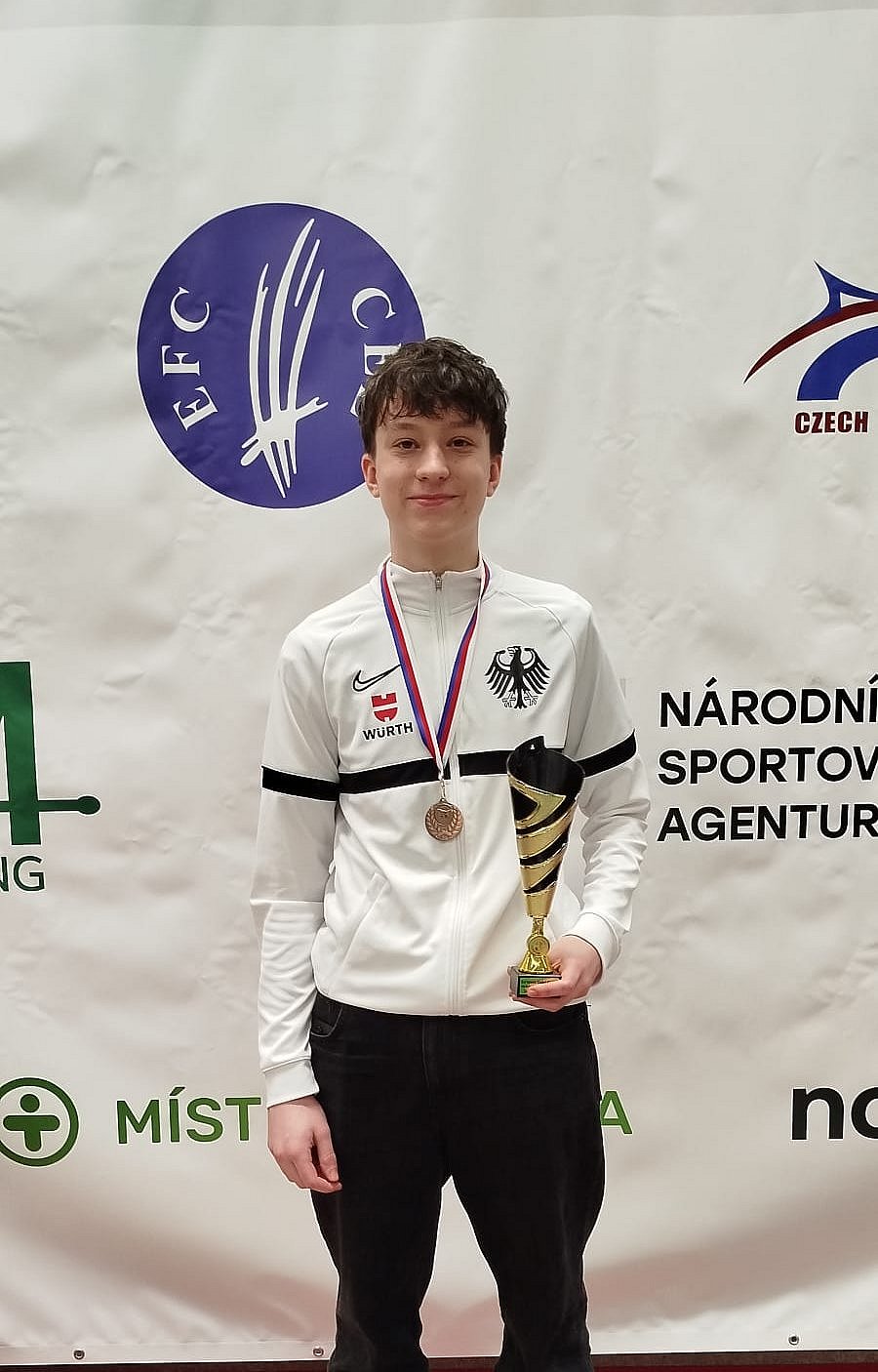 Noch mehr Medaillen konnten die Säbelfechterinnen und -Fechter in Prag gewinnen. Samuel Schiller (FC Würth Künzelsau) konnte sich unter 118 Teilnehmern bis ins Halbfinale kämpfen. Nur knapp unterlag er dem Turniersieger Angelos Ntivis aus Griechenland und wurde starker dritter. Auch der erst 13-jährige Delin Su (TSV Bayer Dormagen) zeigte mit Rang 14 ein tolles Turnier.